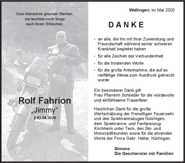 Danksagung Rolf Fahrion