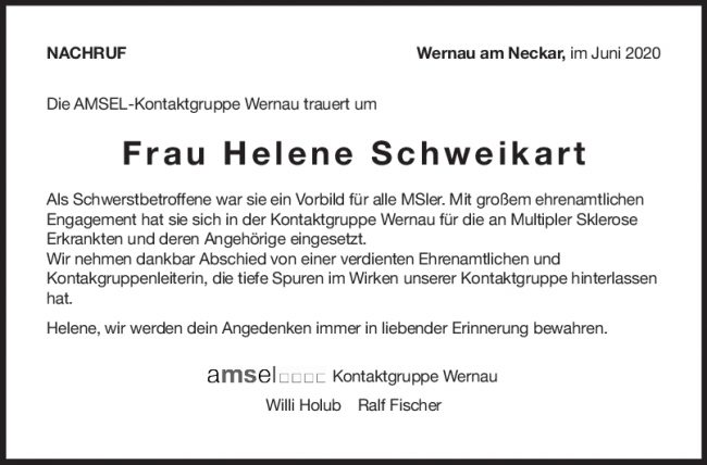 Nachruf Helene Schweikart