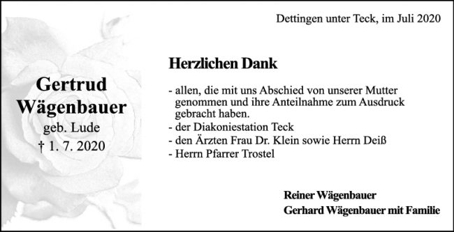 Danksagung Gertrud Wägenbauer