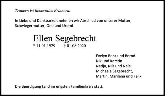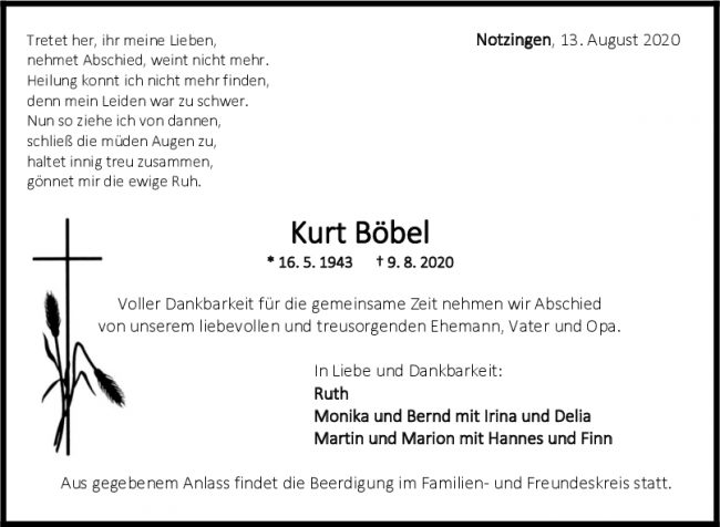 TodesanzeigeVon Benny Kuder12. August 2020Kommentar hinterlassen