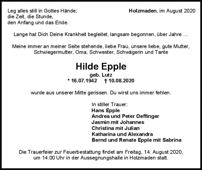 TodesanzeigeVon 12. August 2020Kommentar hinterlassen