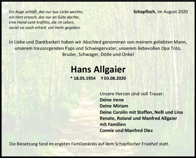 Trauer Hans Allgaier