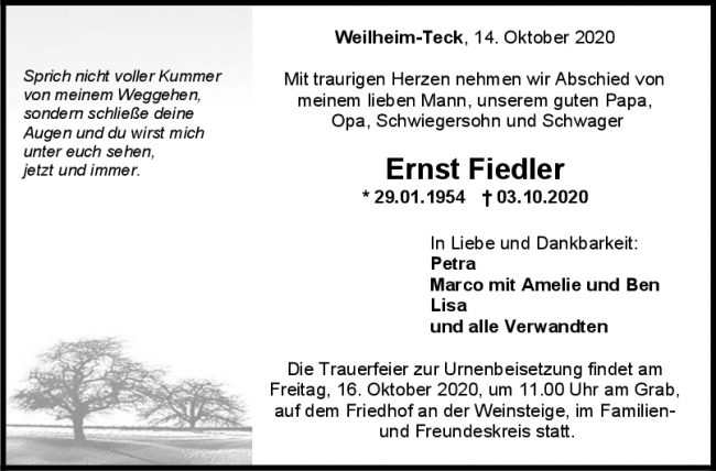 TodesanzeigeVon 13. Oktober 2020Kommentar hinterlassen