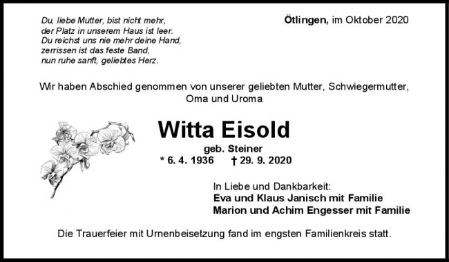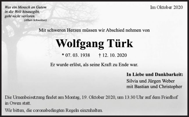 TodesanzeigeVon Benny Kuder14. Oktober 2020Kommentar hinterlassen