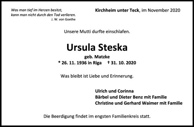 TodesanzeigeVon 3. November 2020Kommentar hinterlassen