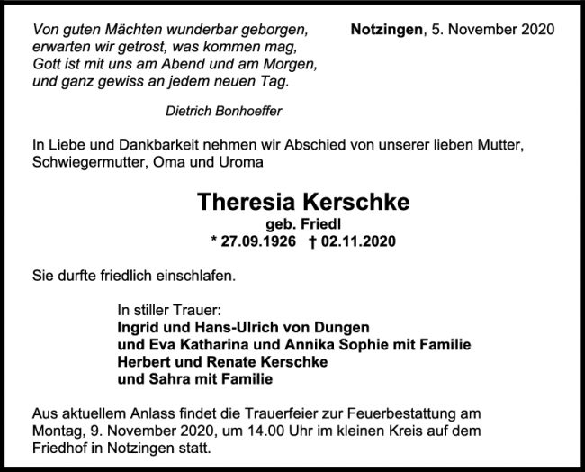 Trauer Theresia Kerschke