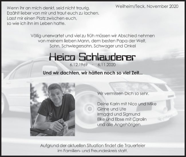 Trauer Heico Schlauderer