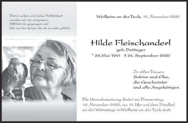 TodesanzeigeVon 15. November 2020Kommentar hinterlassen