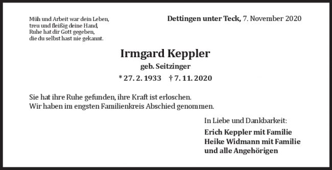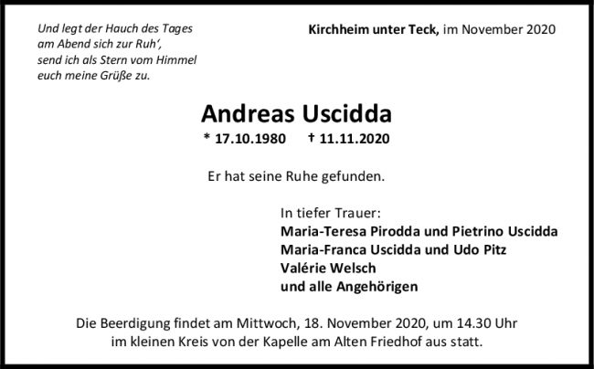 TodesanzeigeVon Benny Kuder15. November 2020Kommentar hinterlassen