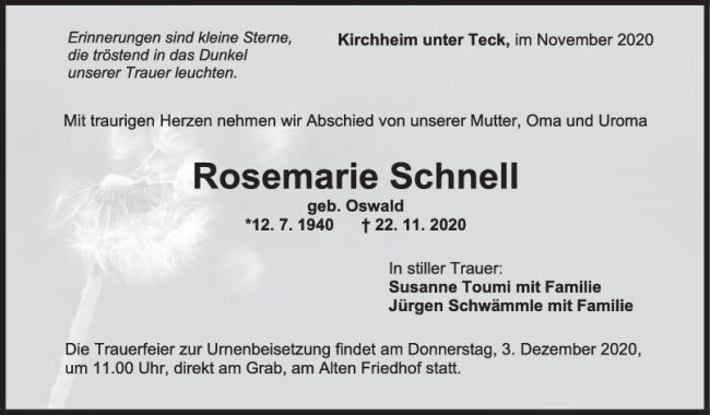 TodesanzeigeVon Benny Kuder28. November 2020Kommentar hinterlassen