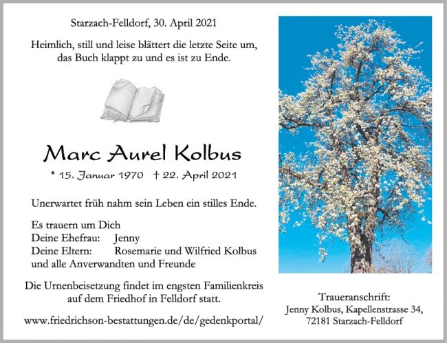 Trauer Marc Aurel Kolbus