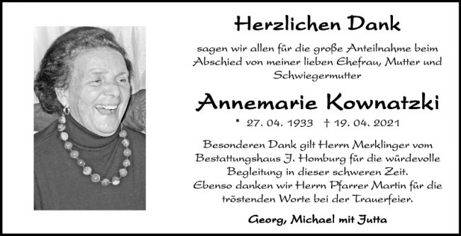 Danksagung Annemarie Kownatzki