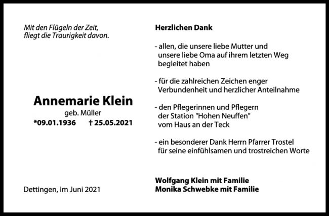 Danksagung Annemarie Klein