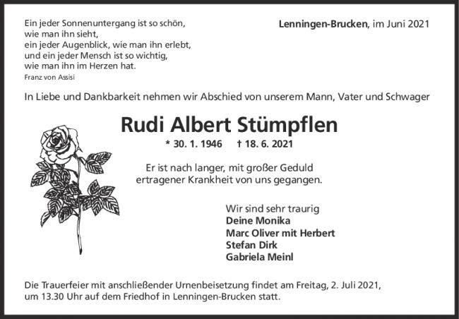Trauer Rudi Albert Stümpflen