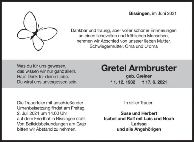Trauer Gretel Armbruster