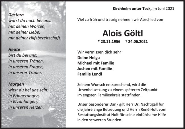 Trauer Alois Göltl