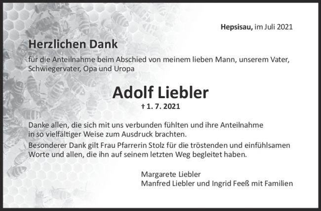 Danksagung Adolf Liebler
