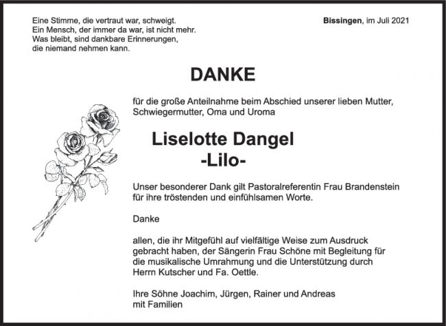 Danksagung Liselotte Dangel