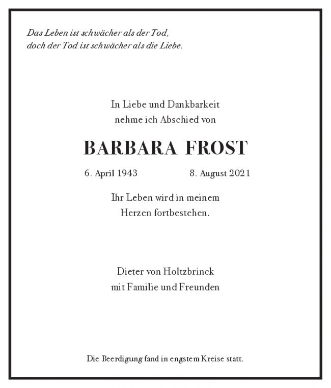 Trauer Barbara Frost