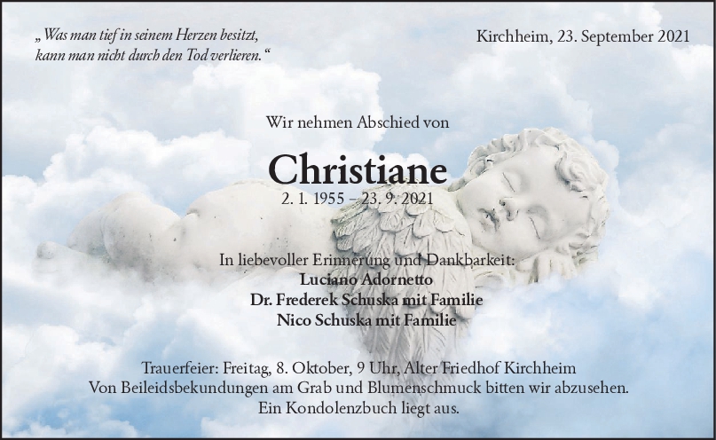Ich wünsche dir viel Kraft und Zuversicht und Gottes Segen..