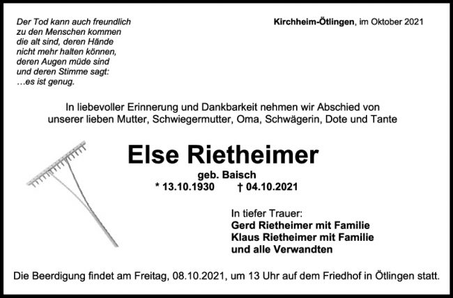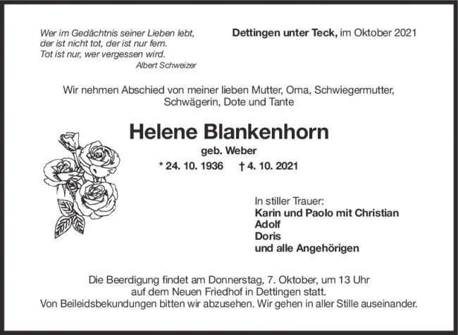 TodesanzeigeVon Benny Kuder5. Oktober 2021Kommentar hinterlassen