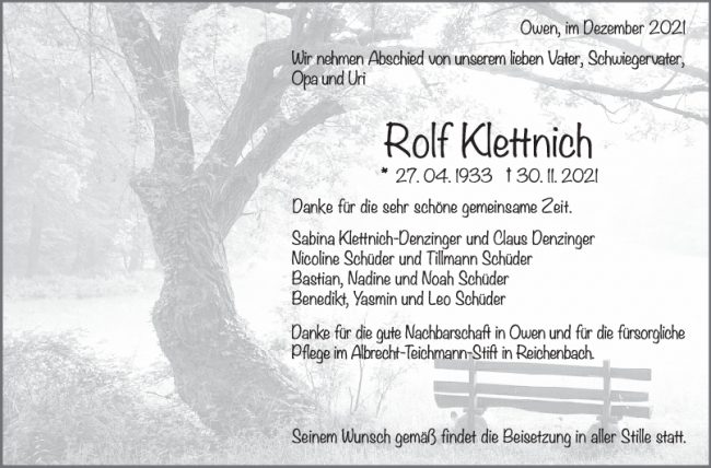 TodesanzeigeVon Benny Kuder11. Dezember 2021Kommentar hinterlassen