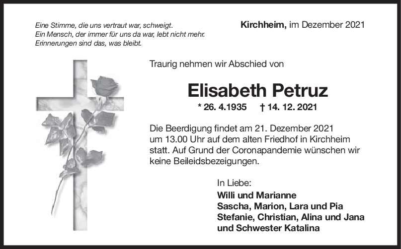 Mein Beileid lieber Willi. Bin sehr traurig das deine Mama verstorben ist. Wünsche euch viel Kraft. Viele Grüße Claudia Borchardt ehemalig Holder.
