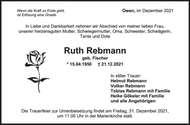 TodesanzeigeVon Trauerportal27. Dezember 20211 Kommentar