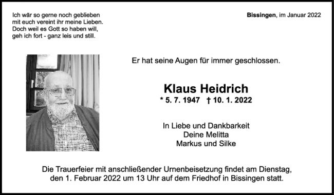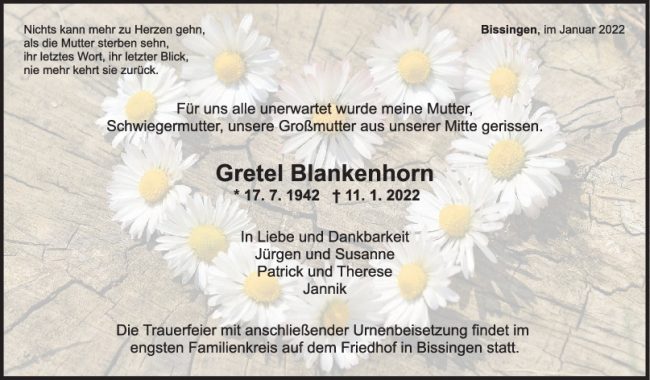 TodesanzeigeVon Benny Kuder24. Januar 2022Kommentar hinterlassen