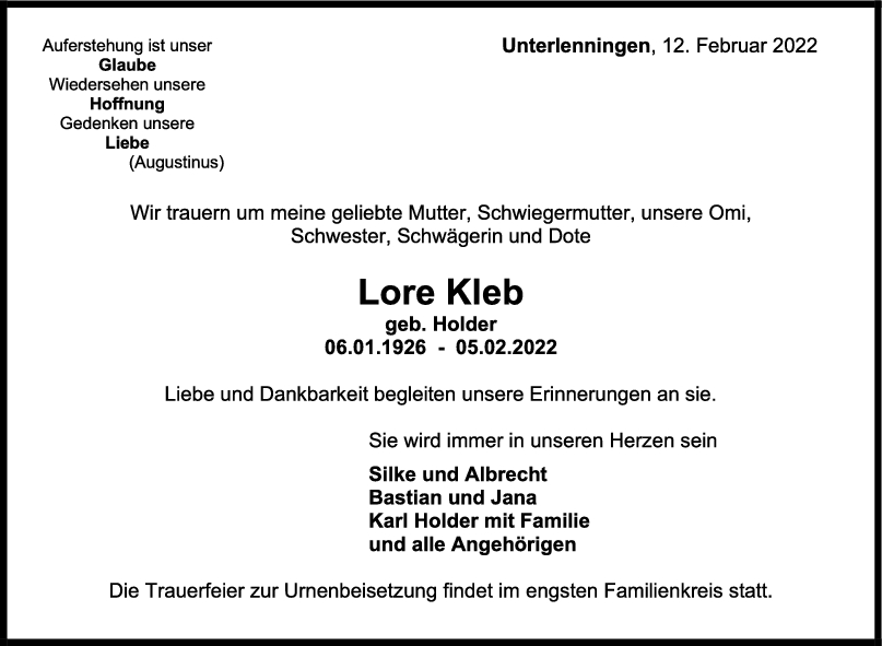Zum Tod Ihrer lieben Mutter