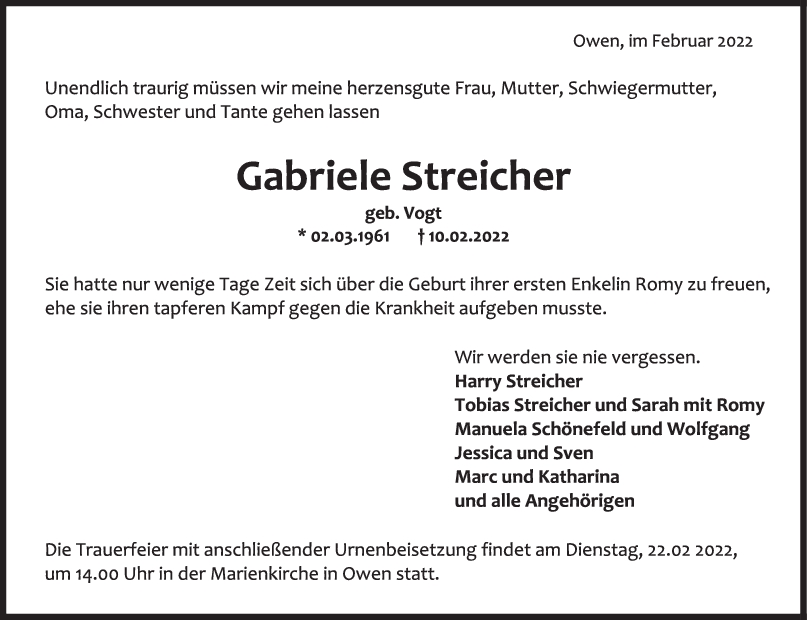 Es tut sehr weh eine gute langjährige Freundin zu verlieren. Wir werden Sie immer in guter Erinnerungen behalten. Wir wünschen dir Harry viel Kraft für die