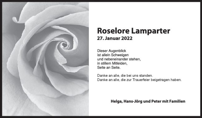 Danksagung Roselore Lamparter 05/03/2022