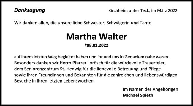 Danksagung Martha Walter
