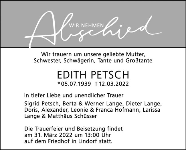 Trauer Edith Petsch