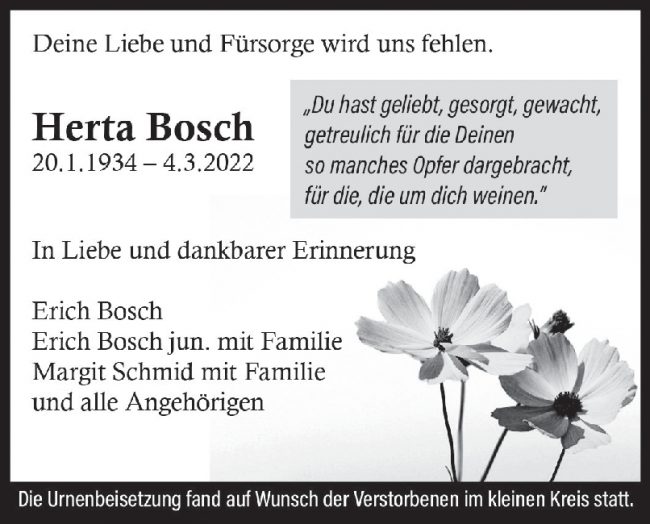 Trauer Herta Bosch