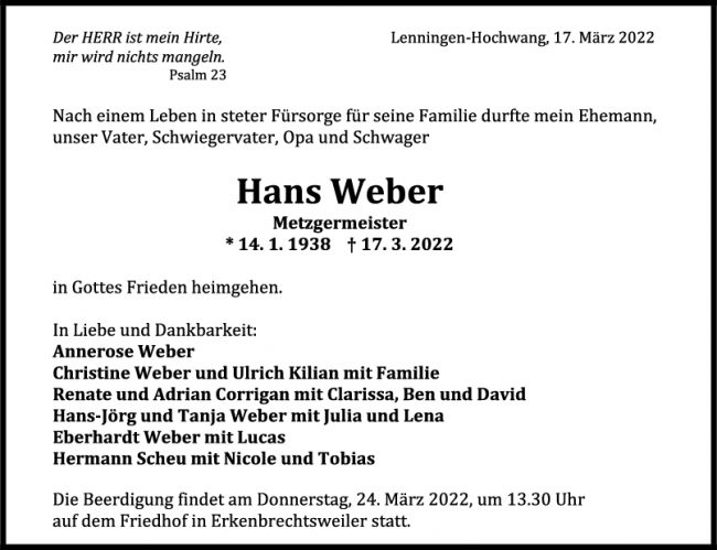 Trauer Hans Weber 19/03/2022