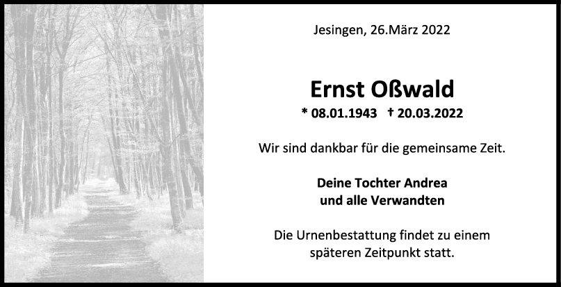 Traurig nehme ich Abschied von Ernst und wünsche Andrea viel Kraft.