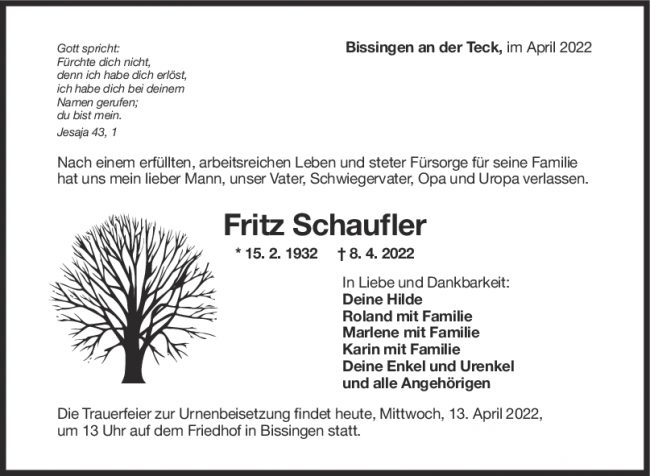 TodesanzeigeVon 12. April 2022Kommentar hinterlassen