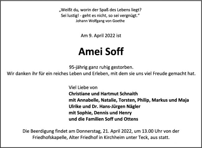 TodesanzeigeVon 18. April 2022Kommentar hinterlassen
