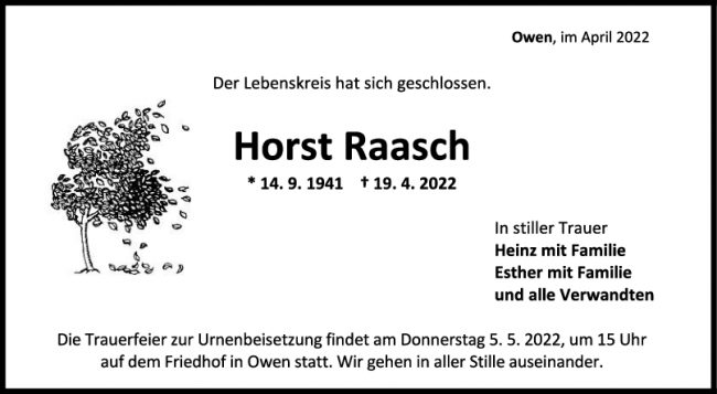 TodesanzeigeVon Benny Kuder23. April 2022Kommentar hinterlassen