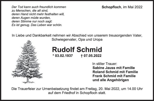 TodesanzeigeVon 15. Mai 2022Kommentar hinterlassen