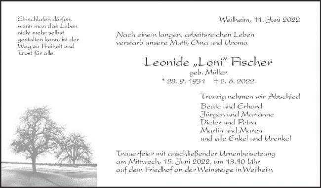TodesanzeigeVon Benny Kuder12. Juni 20221 Kommentar