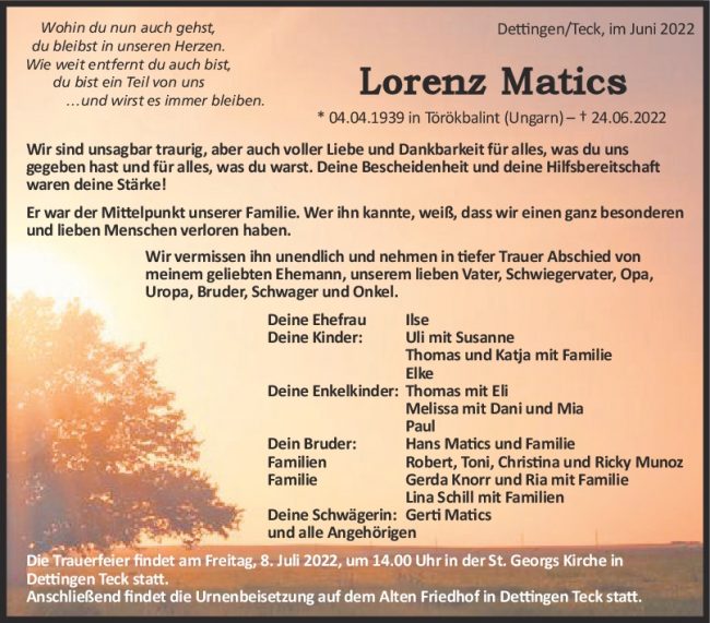 TodesanzeigeVon Benny Kuder2. Juli 2022Kommentar hinterlassen