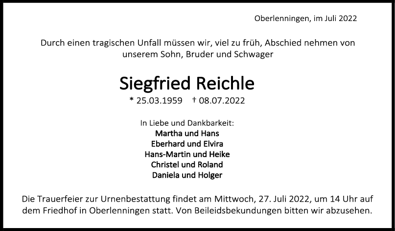 ich möchte meine Anteilnahme am tragische Tod Eures Sohnes und Bruders auf diesem Wege ausdrücken.