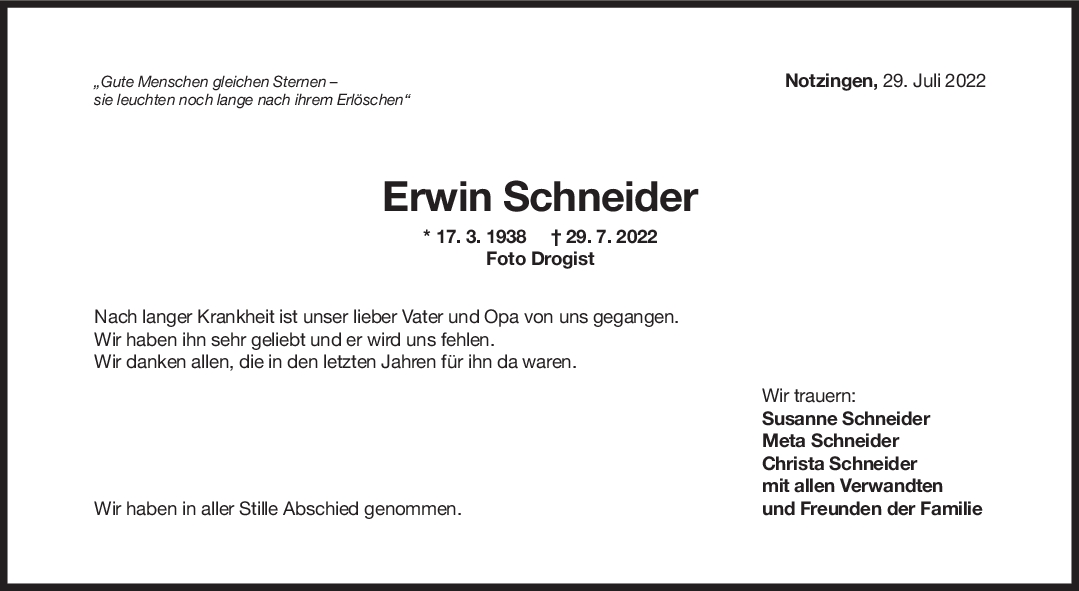 unvergessen und in ewiger Dankbarkeit werde ich mein guten Lehrmeister Erwin Schneider immer in Erinnerung behalten.