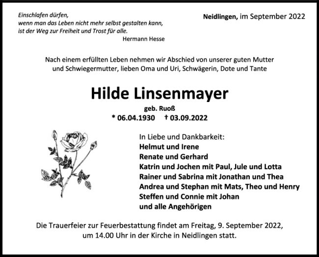 Traue Hilde Linsenmayer 07/09/2022