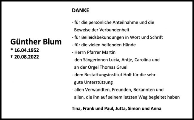 Danksagung Günther Blum