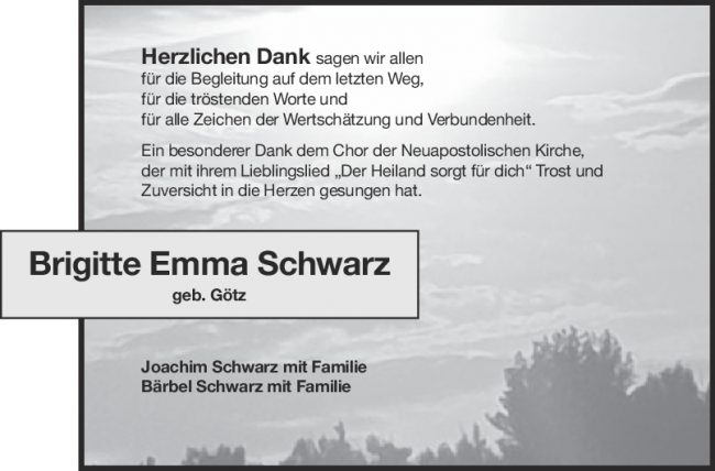 Danksagung Brigitte Emma Schwarz