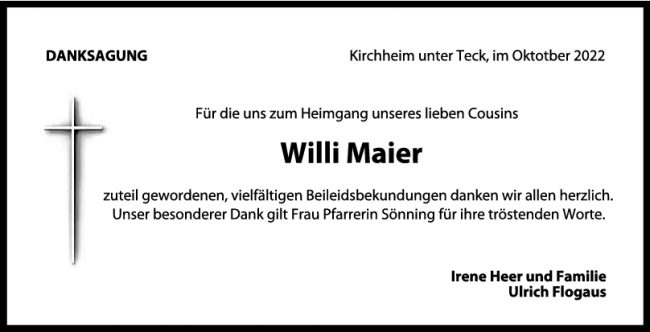 Danksagung Willi Maier 28/10/2022