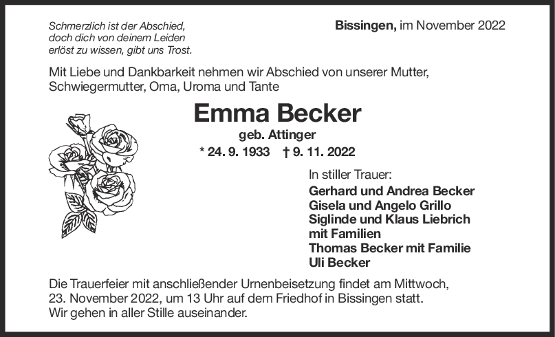 Aufrichtige Anteilnahme, sagen euch allen Karin und Hartmut. Nun sind Emma und Hermann wieder vereint.